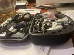 Leica and Designs for Vision 4x. I retired and have no use for magnification. The Designs for Vision has a crack in left lens. No vision issues...