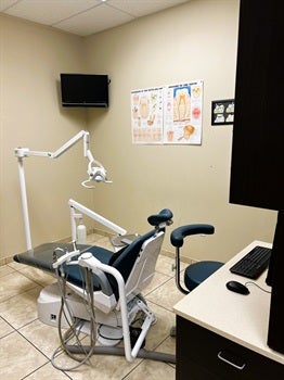 The office features five operatories and is well-equipped with one wall-mounted x-ray, one mobile X-ray unit, two intraoral cameras, an Orthopantomograph OP30 pano, and plumbed nitrous (not currently in use).