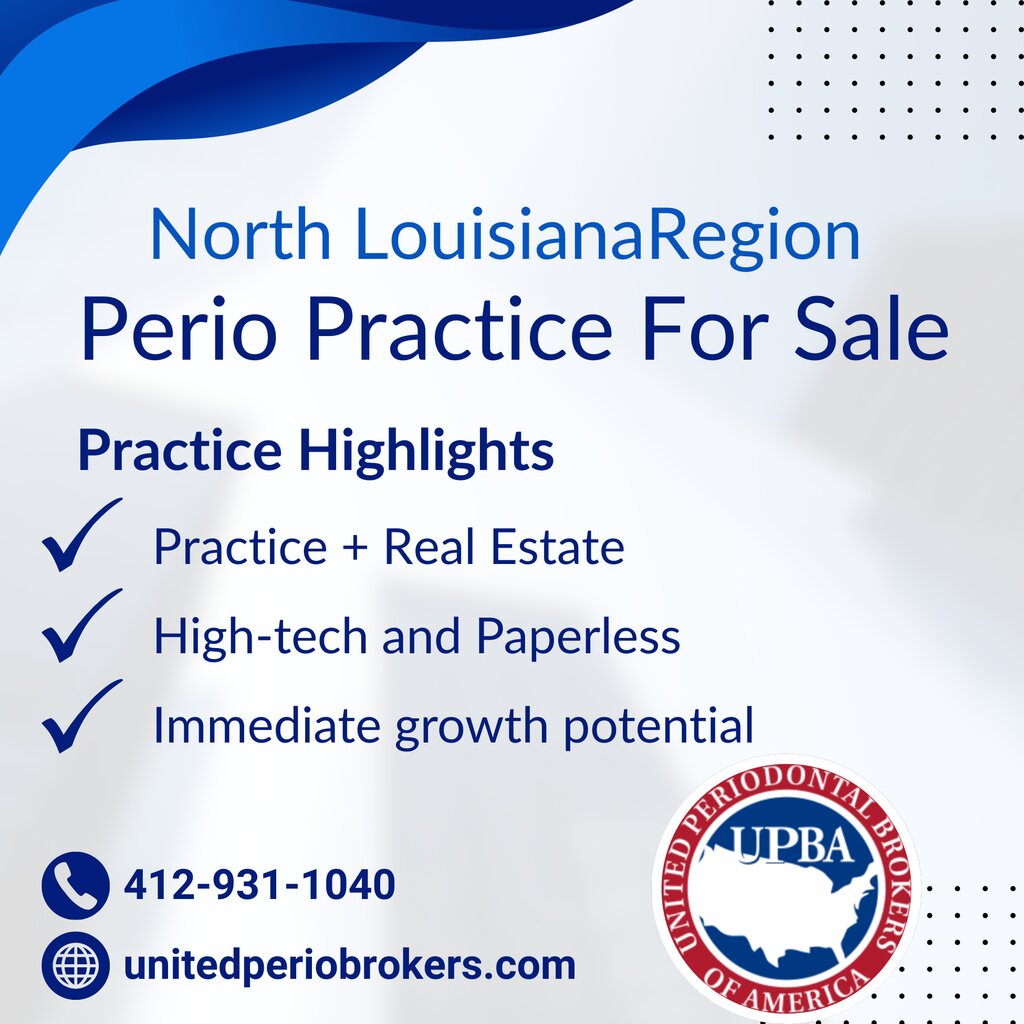 This is an opportunity to acquire an established, profitable periodontal practice in the North Louisiana region. The real estate is also available for purchase.