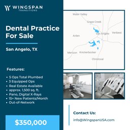 General Dental Practice San Angelo, Texas FOR SALE $350,000 -- Real Estate is available in addition to the practice for $300,000, stand alone...