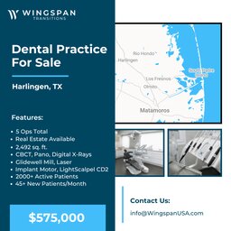 General Dental Practice Harlingen, Texas FOR SALE $575,000 – Real Estate is available in addition to the practice for $360,000, high rise,...