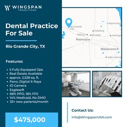 General Dental Practice Rio Grande City, Texas FOR SALE $475,000 – Real Estate is available in addition to the practice for $510,000, stand...