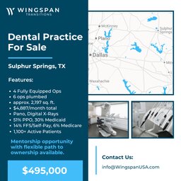 General Dental Practice – Sulphur Springs, Texas FOR SALE $495,000 – This general practice has been serving its community for 12+...