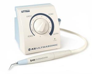 Powerful and versatile, the AZ Ultrasonic is a piezo ultrasonic generator that uses ultrasonic tips to perform dental treatment. Numerous settings permit use for a broad range of applications including perio, endo and general scaling. New technology enables the unit to self-adjust for a consistent amplitude/vibration at any level of operation. Other features include: variable water flow control, numerous tip options and lightweight handpiece. For more information, call 888-JMORITA (566-7482) or contact your dealer.